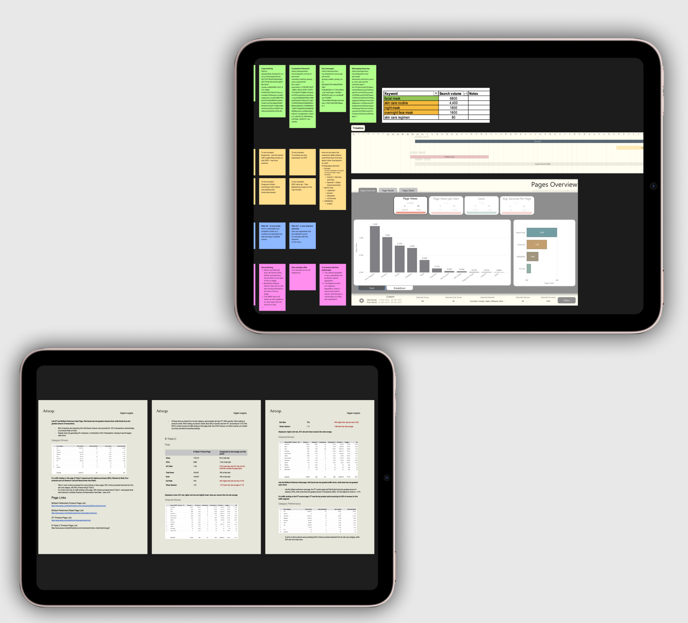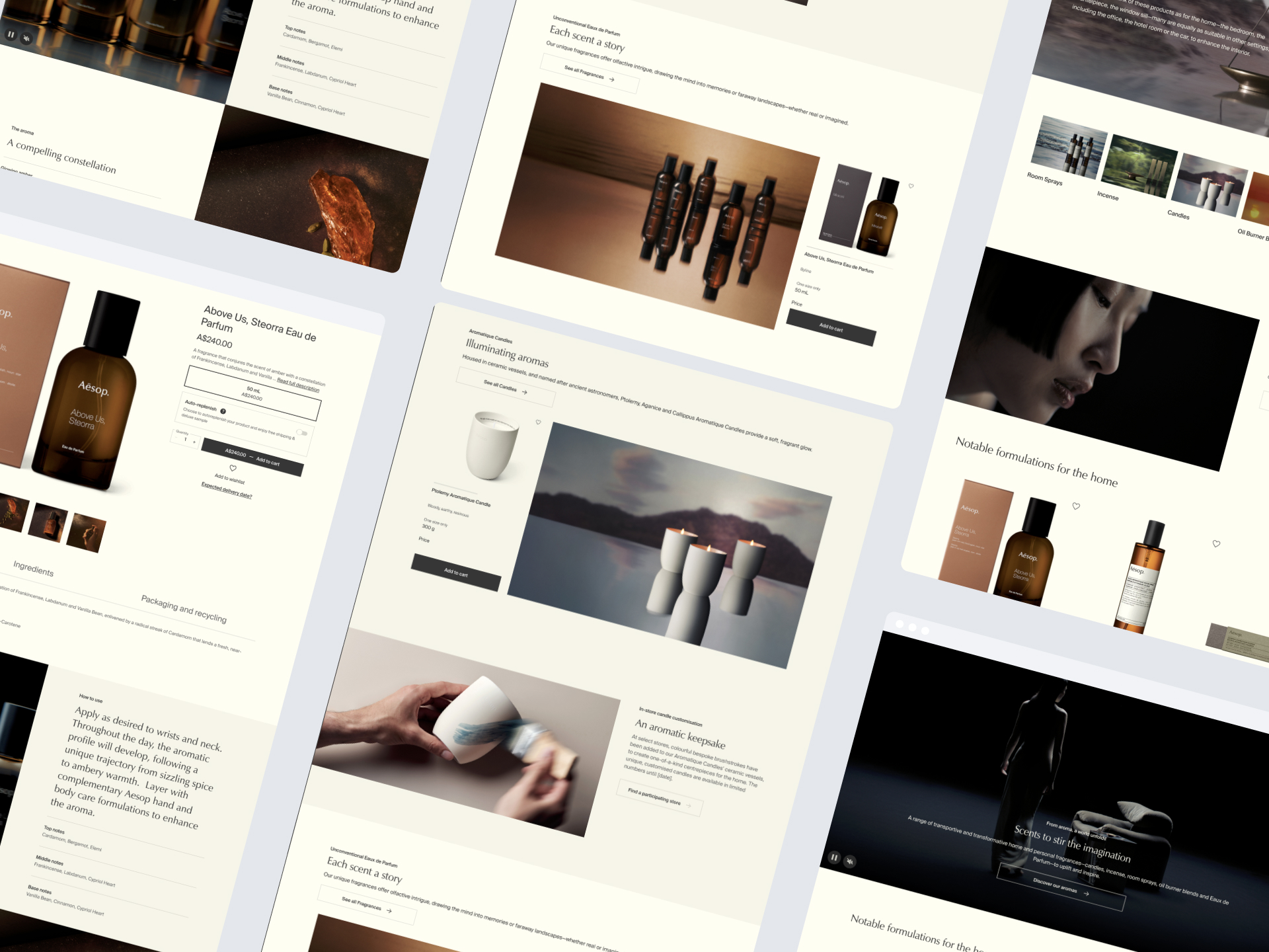 As a Product & Experience Designer at Aesop (L’Oréal), I shaped global content and product experiences for cross‑category campaigns – driving engagement and conversion through UX strategy, content optimisation and data‑led iteration. I delivered end‑to‑end design from marketing briefs to UX decisions, wireframes, SEO‑aligned content structures and annotated delivery, while guiding global markets and collaborating with development on platform capabilities.